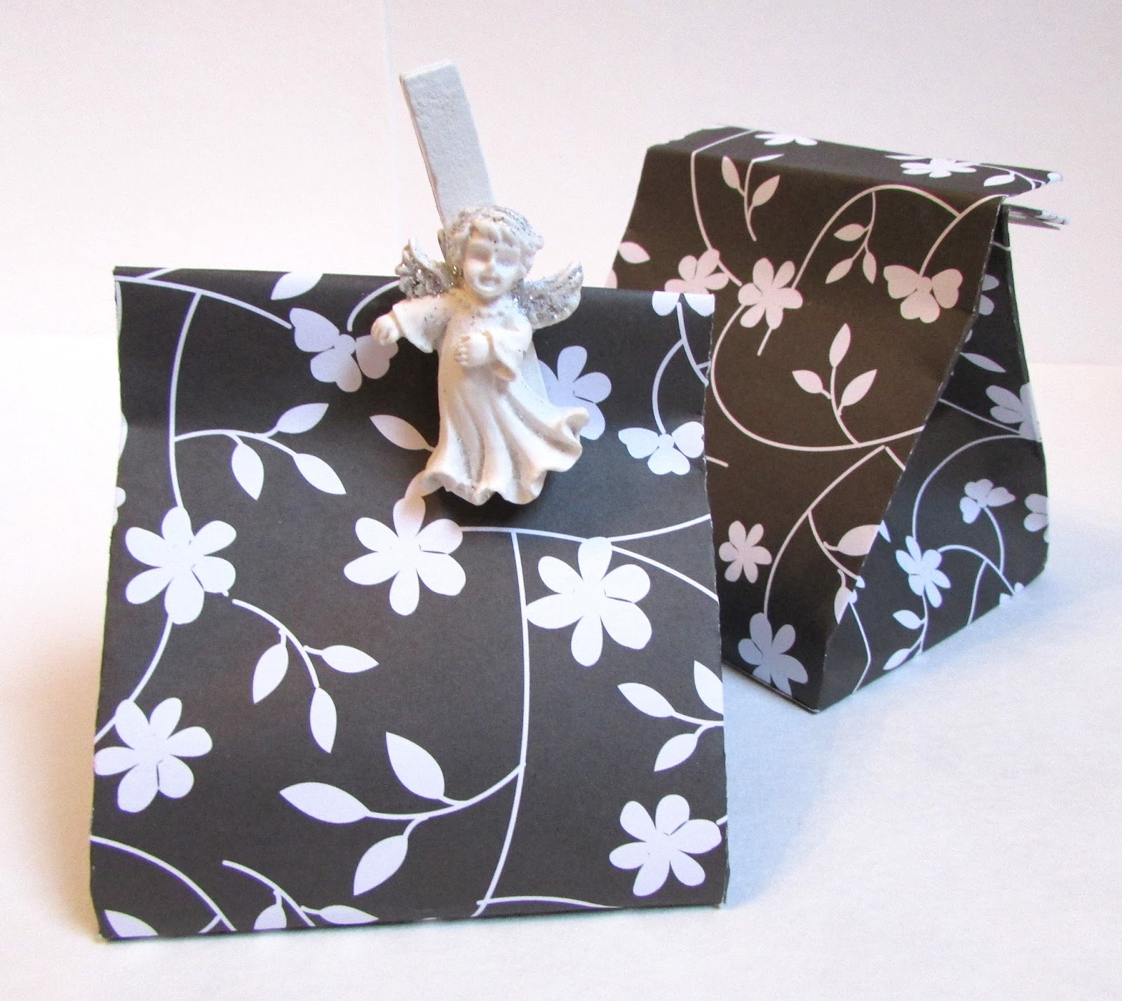 Можно делать коробочки и меньшего размера по такому же принципу. А чтобы коробочка выглядела понаряднее, возьмем соединительные ромбики от листа для "крышечки" и используем их для основы, и наоборот. Произведем так сказать обмен ромбиками. Конечно, это имеет смысл, если листы скрапбумаги различаются по рисунку. У меня так и сделано :)